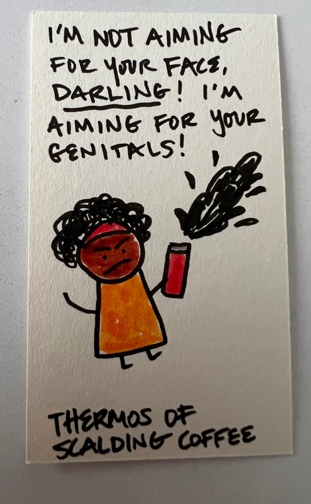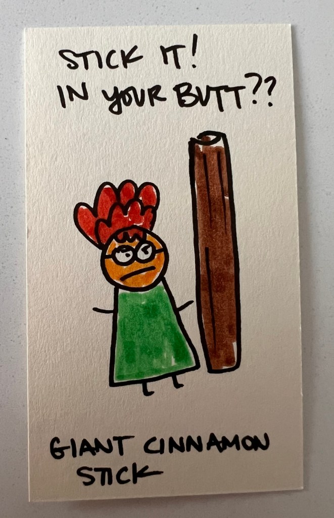 The crum-bums swarm the Earth like a swarm of the nastiest little cicada fuckfaces that have ever surfaced! They’re getting in people’s hair and they play their dumb music late at night when you’re trying to get some sleep. Rude little shits! But the thing they love to do the most is screw around with people’s cooking / baking. In fact, there are four of Cramson’s top crum-bums and they’re the fucking worst: Distraction, Forgetfulness, Despair and Dog-Fart. There’s nothing these guys love more than to see someone get ready to make a very elaborate dessert and then MESS IT UP! Oh they laugh and laugh and laugh!