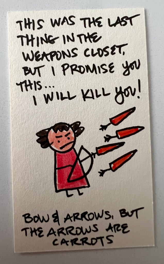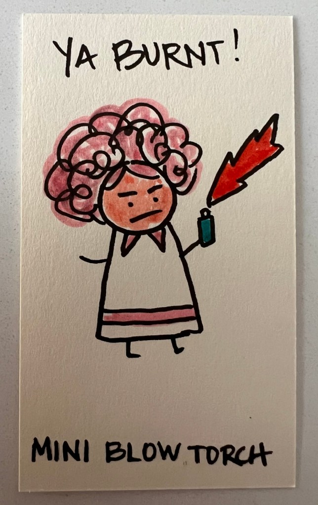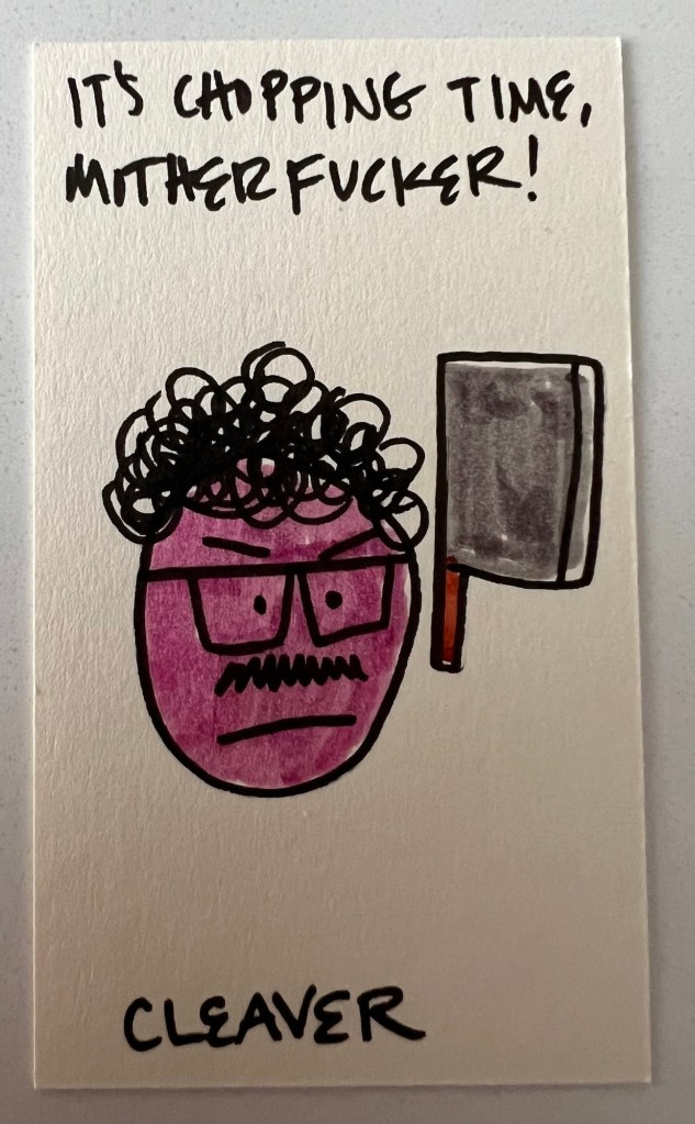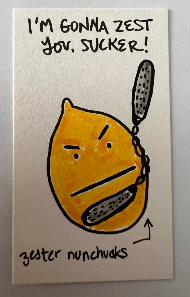 When Limone figured out what was happening, she got her team together and said “Ladies! (And Gene!). This is war!” And so the Baker’s Dozen took up arms! Here’s everyone’s weapon of choice & war-time catch-phrase: